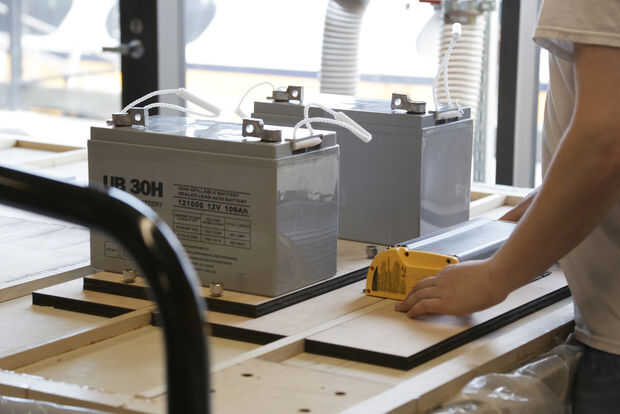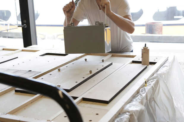 Posición de la madera de la batería se inserta dentro de la caja de torsión.