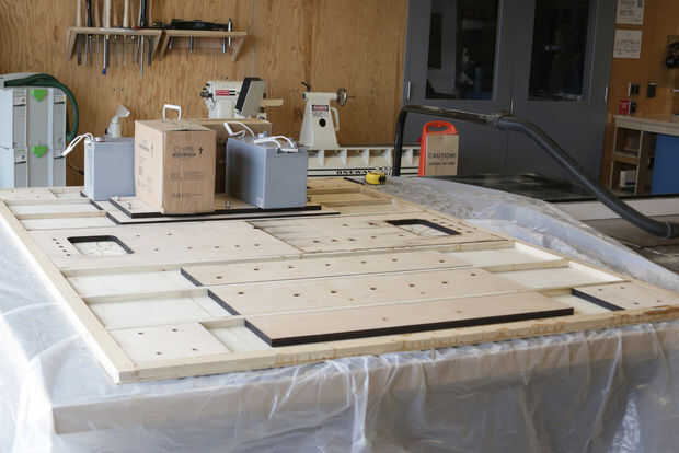 Utilice el panel de alineación de madera y algunas de repuesto 1/2-13 pernos para asegurarse de que las placas estén alineadas.