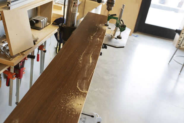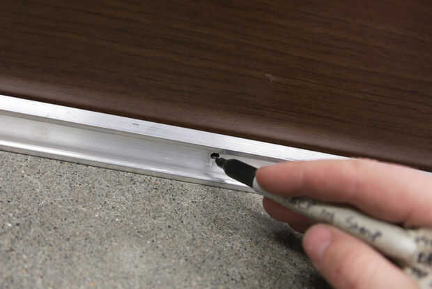 Utilizar los canales de aluminio para marcar los agujeros de perforación a lo largo del borde inferior de los paneles de la bastidor de cama.