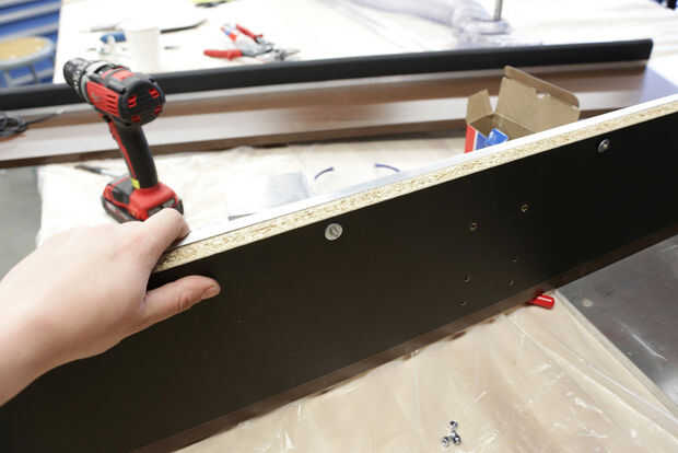 Perno de los canales de aluminio a la base exterior de la cama.