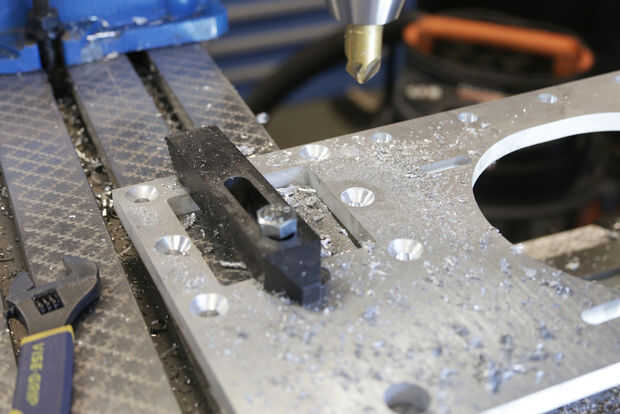 Avellane los ocho agujeros alrededor del perímetro de la plazoleta de la placa de montaje del motor que encaje con la caja de engranajes.