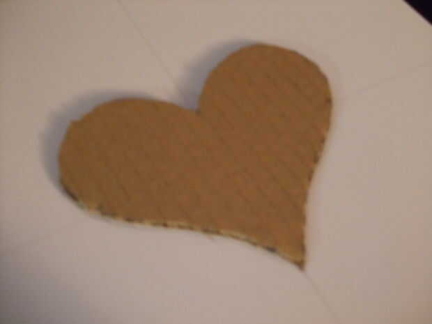 Tomar la caja de la tarjeta y medir las dimensiones. Mina fue 12 x 12. Ponga una marca en el medio de cada lado, en mi caso 6 pulgadas. Luego conecte las señales de un lado del panel al otro para hacer una X. Ahora ya sabes dónde está el centro. Ponga su corazón en el centro y trace sobre la caja. He marcado en el corazón donde las líneas a ambos lados eran cuando trazado por lo que fue en el mismo lugar cada vez. Hacer esto por todos lados.