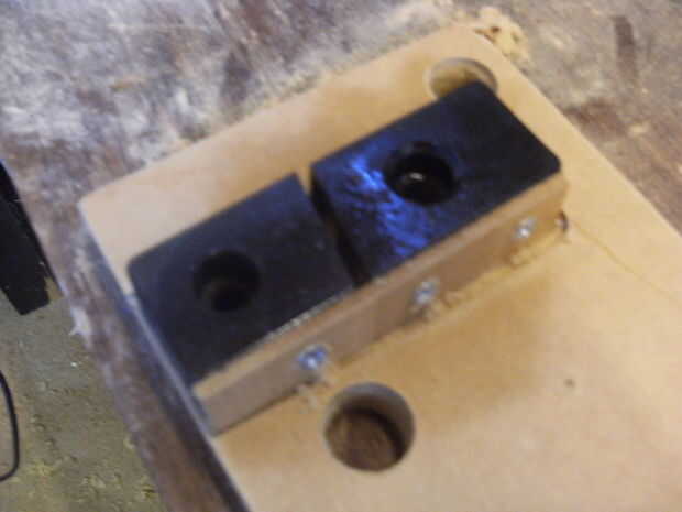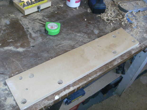 La Junta original era una pieza de 124 mm x tablero 600 x 15 mm del bloque. Yo he sustituido este con MDF y sólo había unos 18mm en la vertiente así empotrar los bloques espaciadores de plástico.