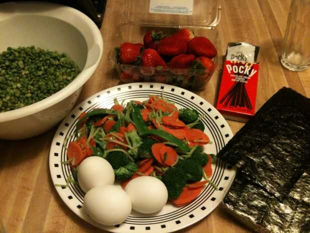 Para decidir lo que queríamos para nuestros bentos que básicamente fuimos a la tienda y apenas agarró todo lo que era colorido, nos inspiró, promesa.