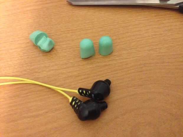 Corte aproximadamente la parte inferior de la mitad de los tapones para los oídos. Usted siempre puede cortar más (mmm... s ' Mores) más tarde si lo desea.