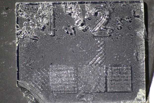 El objeto de la prueba de tamaño completo, sin la forma cónica, también fue impreso en ascua. La impresión solamente acertada ocurrió en una nueva ventana PDMS, con una cabeza de estructura de aluminio anodizado. Los ajustes eran idénticos a los del objeto de prueba pequeña muestra en las imágenes y en el ajuste impresión archivo excepto que el tiempo de exposición del modelo fue aumentada a 4 segundos. La calidad de esta impresión es notablemente mejor que la de la forma-1 o el objeto de prueba pequeño impreso con la ventana PDMS dañada.