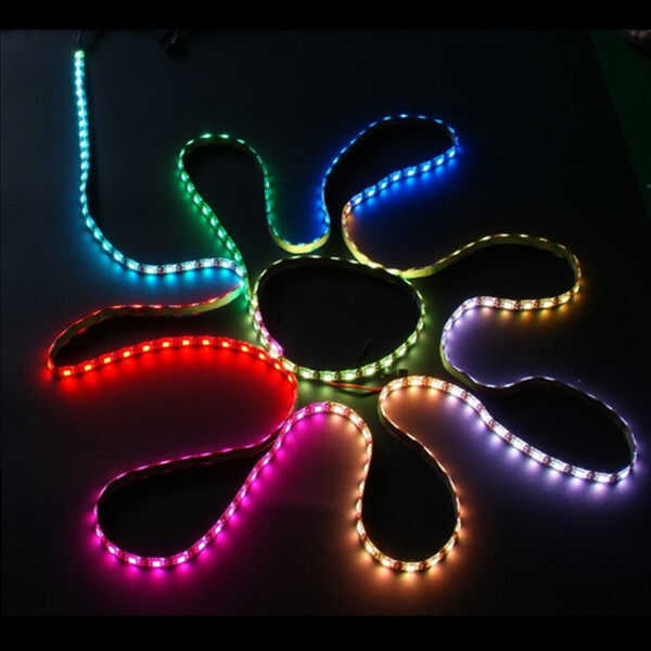 Básicamente sólo 12 x 16 pixel LED matriz hecha en una máscara usable. Una alto impacto poliestireno plástico placa base con 142 píxeles de WS2812B 60 LEDs por metro de tira unida. Cada pixel es controlable independientemente de un solo pequeño Pixel