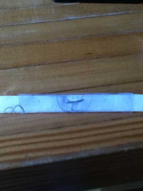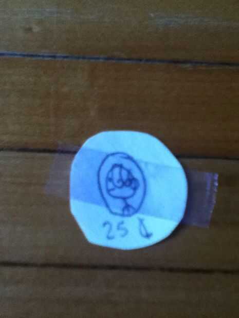 1b. si están ocultando un objeto pequeño, poner un trozo de cinta en él como se muestra. Cinta adhesiva en el interior de la marcha blanca.