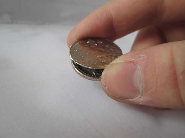 Así, para poner todo junto, soldado una lateral al anillo y caliente pegan al otro. Me aseguré que sólo usé un poco de pegamento caliente en el mismo lugar, como el objetivo aquí no es mantener la cara, pero que le permita actuar como un resorte de la bisagra. Manteniendo lo pequeño, el pegamento caliente se doble y permitir la moneda para abrir un poco, estilo concha de almeja. Luego volverá en su lugar cuando se libera. Limpiar la soldadura con un archivo, y era bueno para ir!