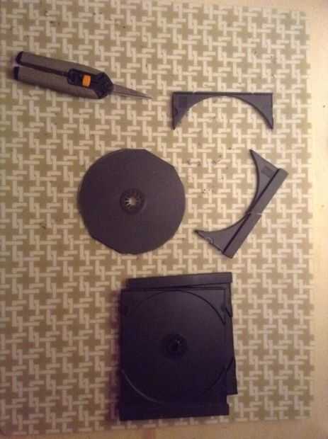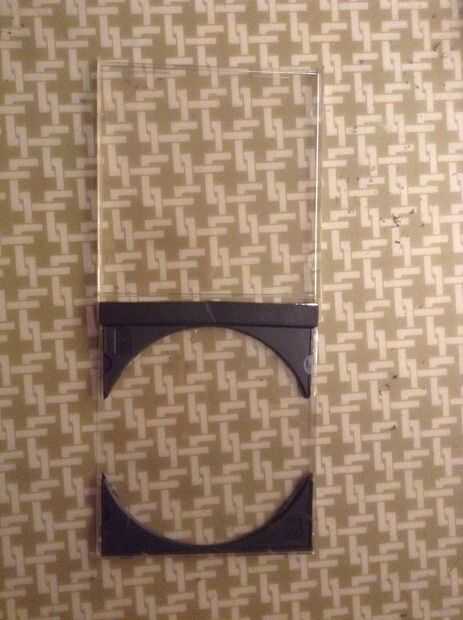 Luego usar una plantilla y cortar el mismo orificio de tamaño en la parte delantera y la espalda de tres casos y solamente un agujero en la parte posterior de uno de los casos (cuidadosos de no romper el plástico). Otra vez dejo el casos sin cortar completamente.