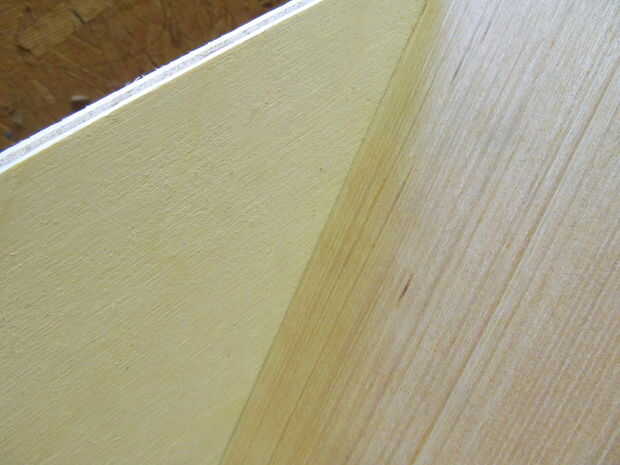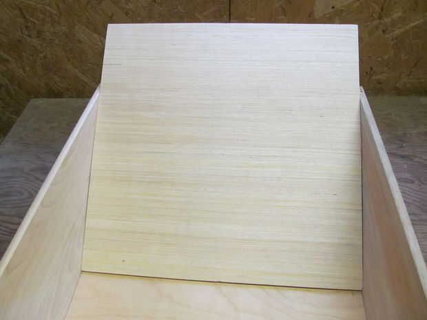 -Prueba el pedazo de madera contrachapada para ver si encaja en su cajón, pero no dejarlo caer al fondo y no caer hacia abajo! Lo hice y fue una molestia enorme para conseguir la pieza del cajón. Deje un borde de ella descansa sobre la parte superior del cajón (véase cuadro 5). Prueba para asegurarse de que tanto la longitud y la anchura son correctos. Si se ajusta perfectamente, pero aún puede ser quitado otra vez sin demasiado esfuerzo, ignore el siguiente algunos puntos. Si no es así, sigue leyendo!