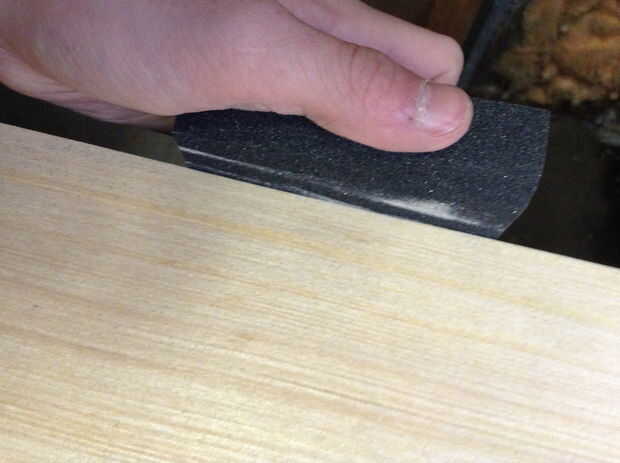 -Utilizar el papel de lija para quitar aproximadamente 1/32" de la longitud y la anchura de la pieza y luego prueba otra vez. Si aún no cabe, repita este paso hasta que la madera quede ajustado pero puede eliminarse.