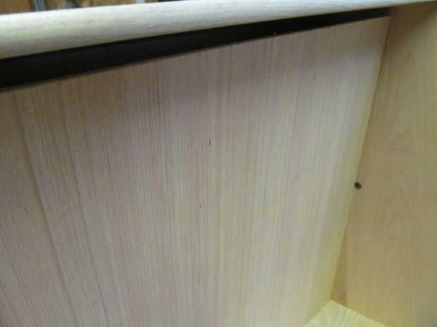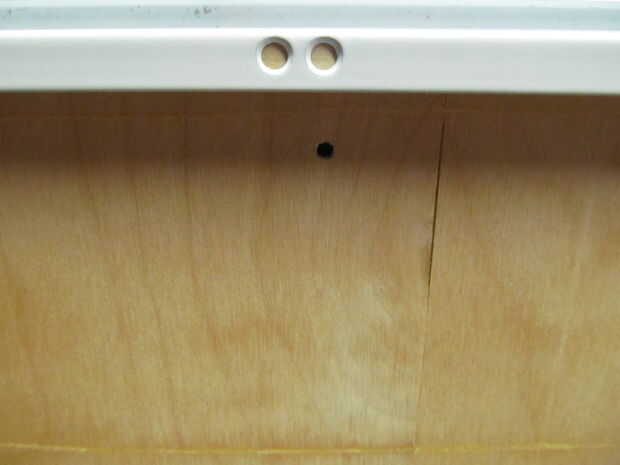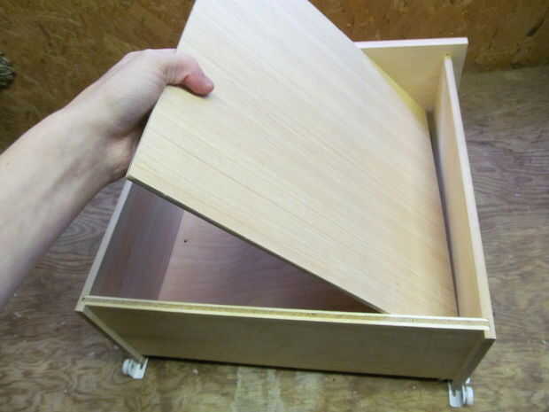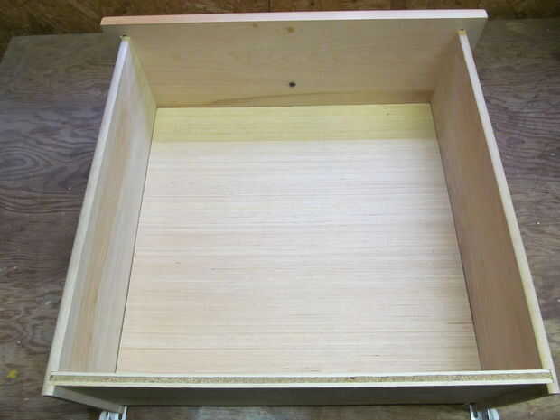 -Resto el cajón en su lado con el borde levantado del fondo falso apuntando hacia arriba.