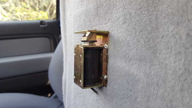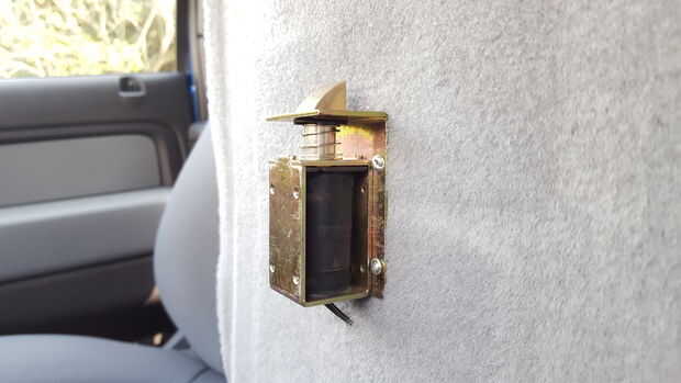 Lugar y marca los agujeros, perforar y fijar. Asegúrese de no cerrar a la placa de captura. La carrera de solenoides son diferentes así que Téngalo en cuenta. Esta situación sólo es posible porque ponemos la placa en. Hice un pequeño corte los cables. Doblé la parte de latón para suavizar la operación, fue muy agudo y fuerte fuera de la caja.
