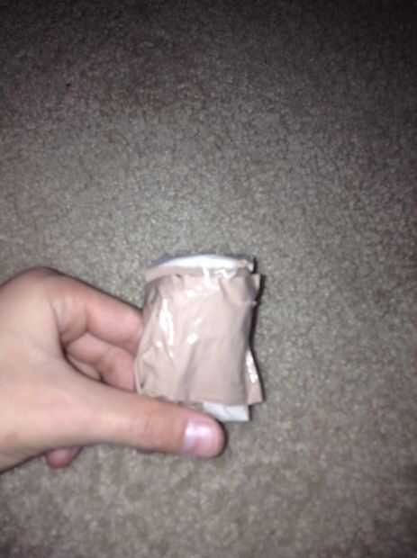 Hacer una pequeña taza con el lado adhesivo en el interior