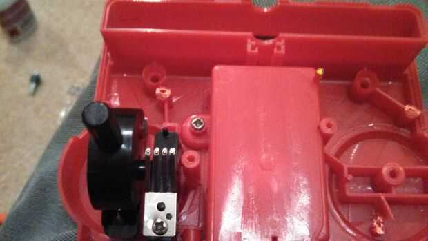 Tomar la cubierta que estaba en la parte posterior de la tapa de la batería y haga clic en volver a colocar, luego poner el tornillo en el interior del controlador tan donde la cabeza del tornillo fue inicialmente es ahora solo hilos, luego atornille la placa de circuito detrás sobre las clavijas de apoyo y luego recortar la esquina superior izquierda para que pueda acceder el tornillo de la caja de bate fácilmente.