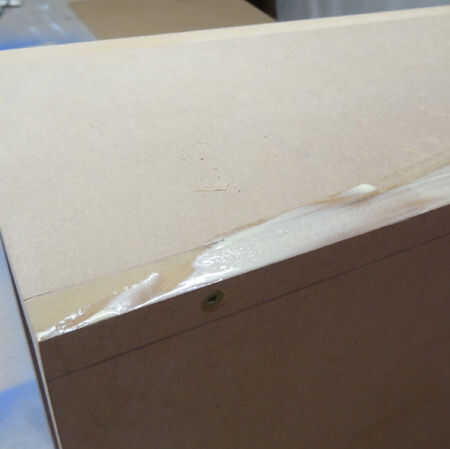 BUENO saber: Última imagen muestra un borde que no fue cubierto con pegamento para madera. Usted puede ver claramente cómo se absorbe la pintura.