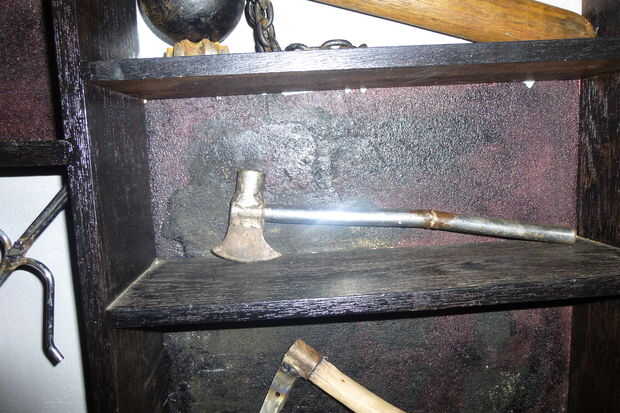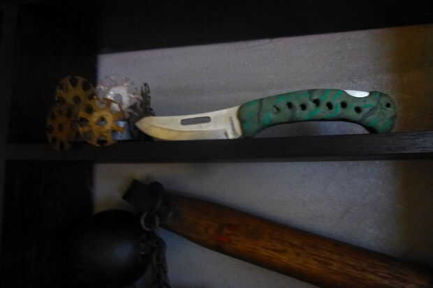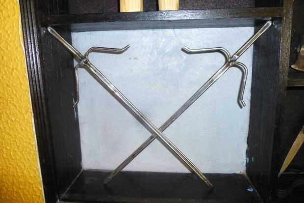 Me encanta las cosas de Ninja y todo el equipo. Hice un par de Sai, sólo para practicar. Nunchakus.Kusarigama.Iron mayal, lanzamiento de hacha. Littles shurikens. Pero es un trabajo en proceso. Hice también un par de Tonfas para practicar artes marciales con mis diez años de edad Son.All el trabajo de madera se hizo con mi Machete.