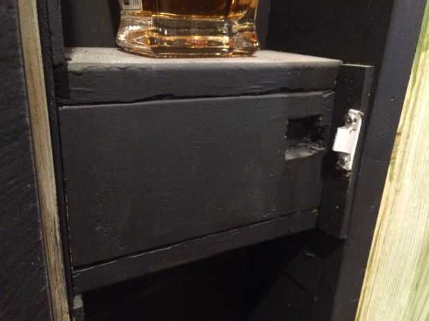 Usa algún Tilo fina para terminar el interior del espacio y luego había pintado todo el interior con alguna pintura de tiza negra que tenía. Cubrió muy bien, y como un bono también es no reflexiva, minimizando cualquier persona darse cuenta de que es un espacio detrás ningún crack.