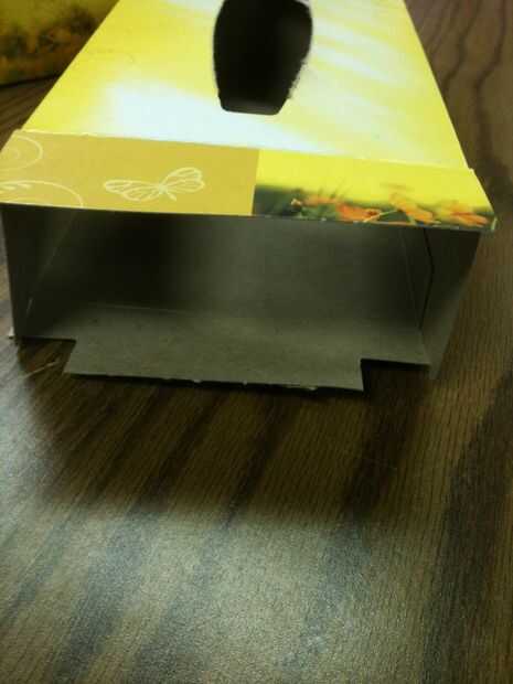 abra un solo lado de la caja y quitar los tejidos. (Necesitará en un paso posterior)Paso 1: El interior Cortan la parte inferior de una caja de tejido diferentes.Paso 2: "las aletas" Abra un lado de la caja arrancó la parte inferior y rasgar las