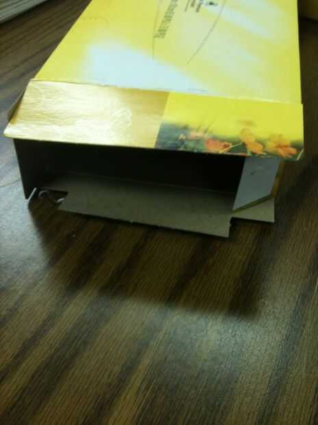 abra un solo lado de la caja y quitar los tejidos. (Necesitará en un paso posterior)Paso 1: El interior Cortan la parte inferior de una caja de tejido diferentes.Paso 2: "las aletas" Abra un lado de la caja arrancó la parte inferior y rasgar las