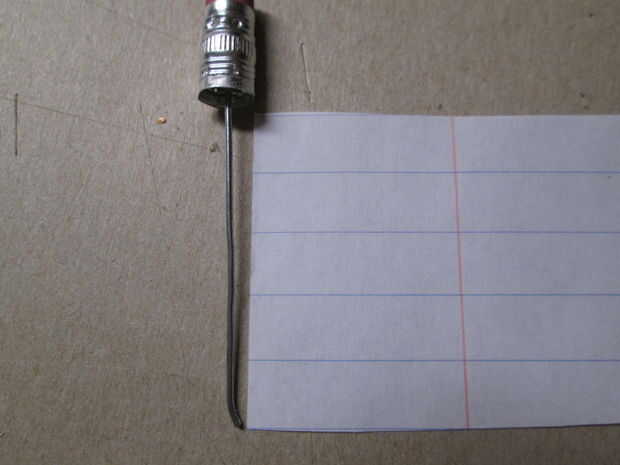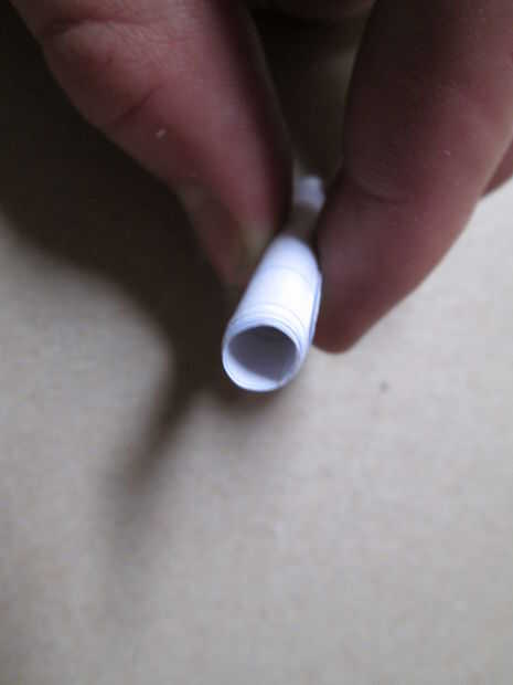 Ahora que tenemos un compartimiento, lo que nos pondrá en él? Decido poner en papel, para ello, corté una altura adecuada basada en la longitud del alambre. Luego enrolló en un cilindro suelto y rodó más. (Ver la foto de la mejor forma de rodillo para el papel). Cuando estaba lo suficientemente apretada como para deslizarse sobre el alambre y la lucha dentro de la explotación del metal para el borrador, me resbaló el papel sobre el alambre y continuó mi balanceo. En algún momento, se convirtió en lo suficientemente apretada como para poner en el compartimento en el lápiz, y así que me deslicé dentro. Asegúrese de que usted no forzarlo demasiado, como lo hizo y terminó consiguiendo el papel atascado en el agujero (y porque no pude quitarlo, tuve que volver a empezar). Si está demasiado apretado, tienes algunas opciones. Puede ampliar para agujero, recortar el final apagado el papel o intentar torcer más. Una combinación de éstos será probablemente funciona mejor para usted.