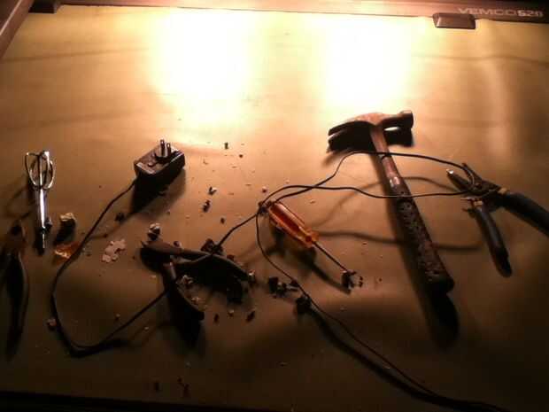 Usted va a necesitar estas cosas: -un cargador de teléfono con un enchufe que se desliza fuera -algo para cortar el plástico con -algo para sacar la placa de circuito con -cinta aislante (opcional pero recomendado)