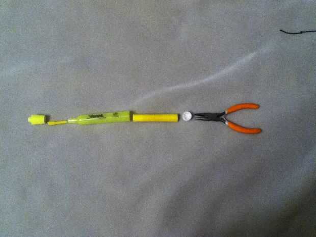 Tomar el alicate de punta fina y desarmar todo. Seguir adelante y tirar del carro de la tinta. y la punta lejos (a menos que desee mantenerlos), dejando sólo el caso.