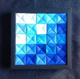 Vuelva a colocar pegamento en los cuatro trapecios más grandes y empuje suavemente la ilustración.