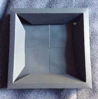 Pegar los rectángulos azules (de la imagen de MS Paint) en forma de molinete. No olvides las cuatro más pequeñas amarillo (imagen de MS Paint) trapezoidales pestañas demasiado. También no sobreestimar el tiempo de secado de la cola. Pensé que tomaría más tiempo para mi pegamento se seque así que tuve que rasgar abierto algunas partes y volver a pegar en la posición correcta.