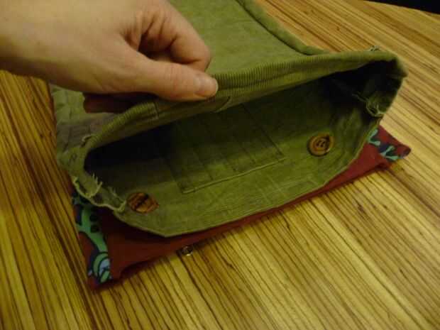 En primer lugar, cortar las piezas de tela que usted necesita. Sólo usé las esteras de lugar para hacer la parte delantera de los compartimientos más robusto, porque la parte posterior se une a la parte trasera de la mochila o a lo robusto del otro compartimiento. Así para la parte delantera del compartimiento que necesitarás dos piezas idénticas de tela. Prender las dos piezas juntas y coser los laterales y la parte inferior. No coser la parte superior, sin embargo, puesto que tienes que poner en el plato después del compartimiento de coser juntos.