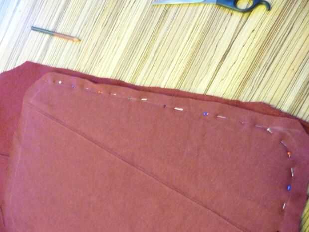 A continuación, coser a la tela de los lados juntos y pin en la parte frontal del compartimiento. Coser los lados al frente.