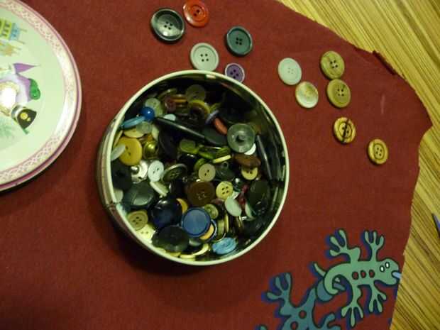 Dos compartimientos y botones para adjuntarlos. Cuatro botones en las esquinas de la parte delantera del primer compartimiento de la puntada.