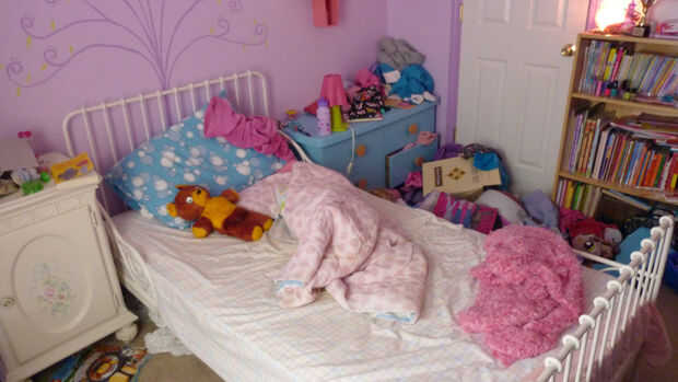 Mi hija tiene TDAH y los profesionales han recomendado que tenga espacios de almacenamiento de información abierto para ayudar a hacer más fácil organizar las cosas. Necesitamos ayuda con todo. Estaba pensando en que una cama del desván sería una buena idea, con un escritorio debajo de él así que ella puede hacer la tarea y leer. Necesitamos más estantes, tenemos un montón de libros en esta casa y su biblioteca es ya desbordante. Y no me iniciado en su armario. Es peor que la habitación. Ella no sabe lo que tiene ya.