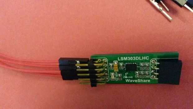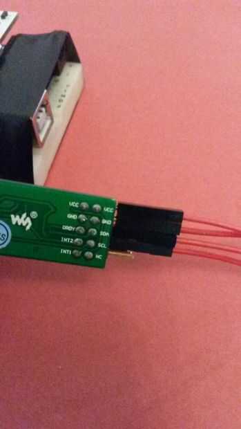 2-conectar los cuatro cables con terminal a los pernos de LSM303 como en fotos y el otro macho terminal para el arduino mega a los pines correspondientes (5v, GND, SDA, SCL) de la mujer
