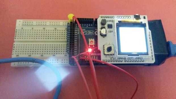 1-Ponga la pantalla de lcd color en la parte superior de la arduino mega (que perfectamente se ajusta).