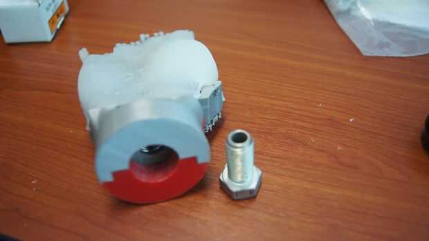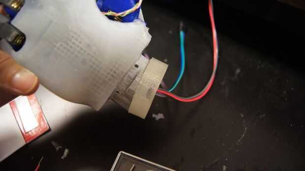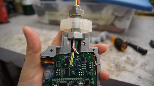 También para esta aplicación, el centro del perno debe taladrarse para tener cerca de 7 ~ 8mm de diámetro del agujero. Este agujero es para los cables (alimentación, I2C) de la Junta de la mano a la toma del antebrazo.