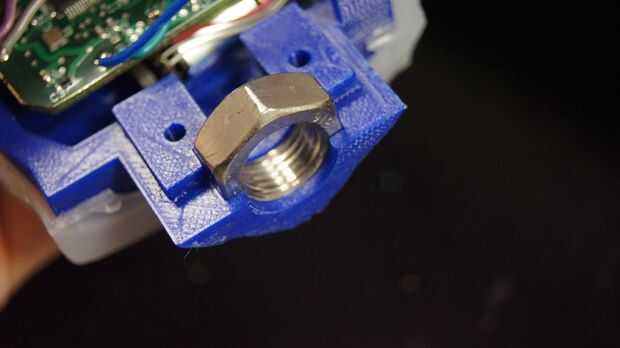 - Coloque la tuerca dentro de la palma en lugar del tornillo. También es apropiado el lugar en forma de hexágono con la tuerca