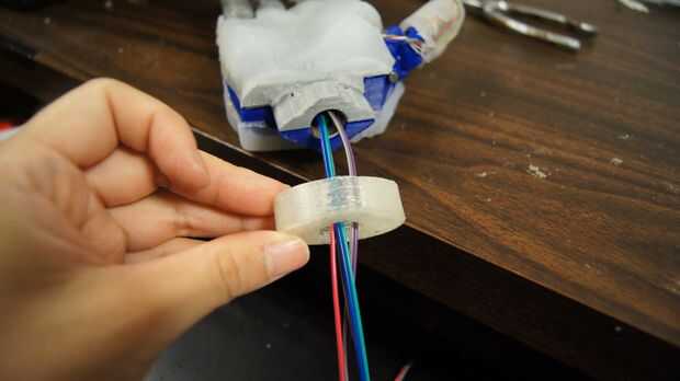 - Monte el soporte de muñeca impreso de SemiFlex en la palma montada. Le aprietan las dos Palmas