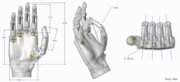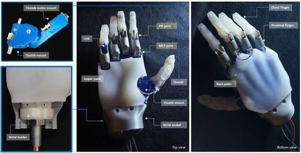 Todos los componentes necesarios para la construcción de esta mano protésica pueden integrarse incluso en esta pequeña mano!