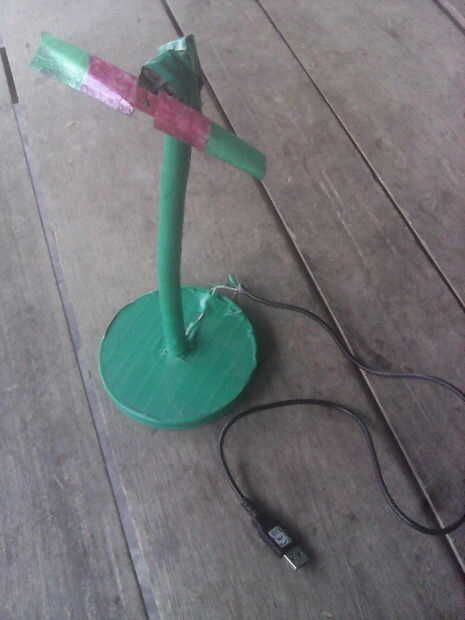 En primer lugar tomar un disco de CD y cinta adhesiva. Después en el agujero del disco colocar el palillo y también cinta adhesiva también mirar algún efecto fresco. Ahora es el momento para conectar el motor de la C.C. en la parte superior del palo y elctronico. Después de todo equipado una su propulsor hecho de papel. Ahora, todas las cosas son listos hacer el cable USB puerto USB de la PC. El ventilador girará y te mantiene fresco. Gracias. Cualquier sugerencia por favor deje su comentario.