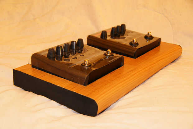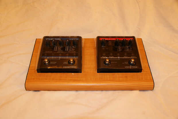 Para este ejemplo, utilizo mis pedales Voicetone TC ELECTRONIC como campo de partida. También se puede sustituir con los otros pedales. Yo no soy un gran fan de velcro y quiero mis pedales a permanecer en el lugar sin tener que pegar nada, así que esto es lo que se me ocurrió.