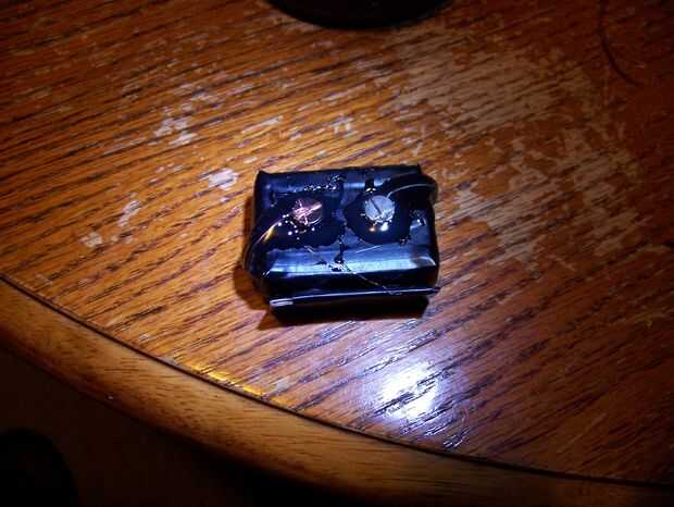 Si vas a hacer esto, usted necesitará un par de cables a los cables positivos y negativos del portapila en tu circuito de bola de la molécula de la soldadura. Una vez hayas hecho esto, envuelva los extremos desnudos de los cables alrededor de algunos de sus imanes de disco y péguelos en la parte exterior del paquete en algún lugar. Me aseguré de que los cables positivos y negativos tenían diferentes polos magnéticos hacia el exterior, una norte y una sur. Hice lo mismo con el portapilas casero, por lo que no había ninguna posibilidad de conectarlo al revés.