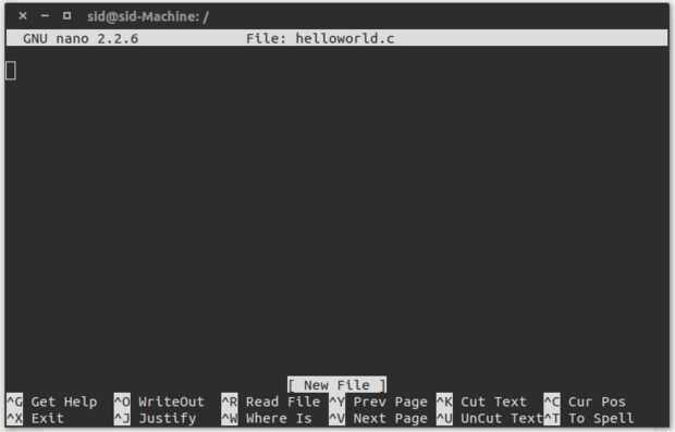 sudo nano helloworld.c