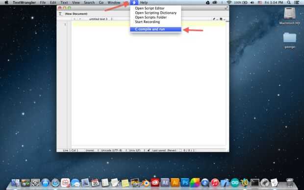 Debería aparecer un nuevo elemento en el menú de secuencias de comandos llamado "C compilar y ejecutar".