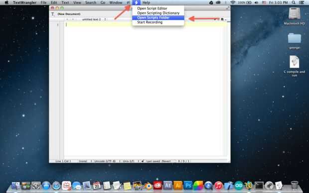 Copie el AppleScript en la carpeta de Scripts de TextWrangler.