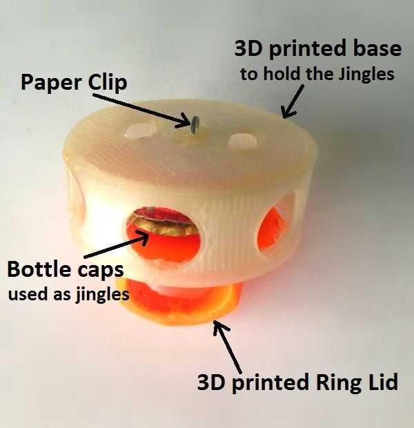 Puesto que el anillo de dedo de Jingle es hecho usando 3D impreso material plástico llamado PLA , el jingle es ligero y cabe comfortablemente en el dedo índice como se muestra en la imagen y el video de arriba. Y la base impresa 3D semitransparente cubre los jingles sin afectar el sonido, que evitar que los dedos de cortes y contusiones mientras lleva puesto el anillo.