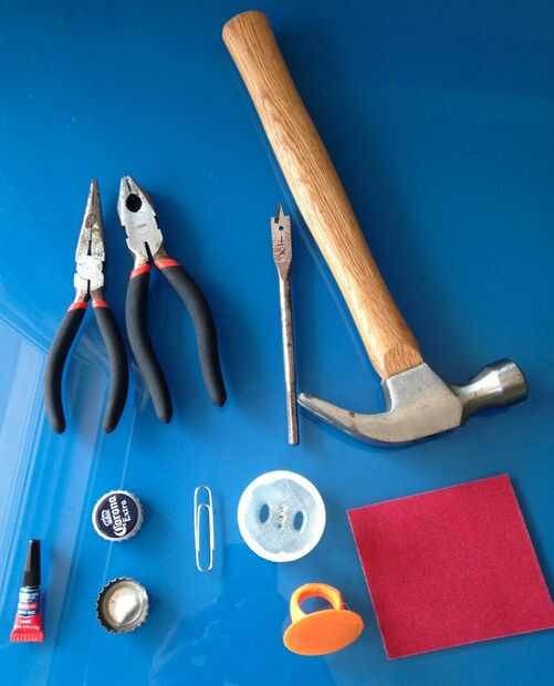 • Martillo y un clavo para hacer orificios en las tapas de botella