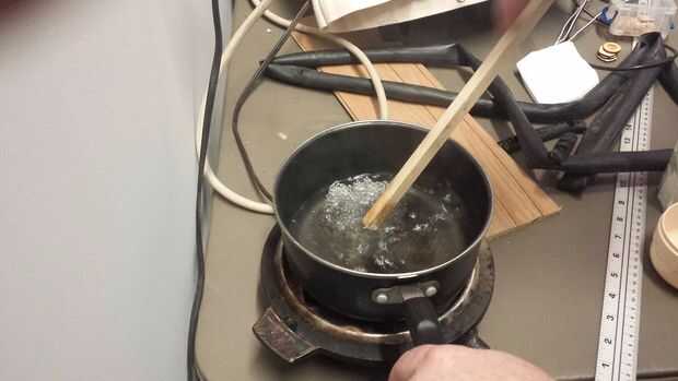 2. Encienda el quemador al bajo. El agua no debe llegar por encima de 150 grados, de lo contrario el instamorph puede empezar a pegarse a la olla y llega a ser demasiado caliente para manejar.
