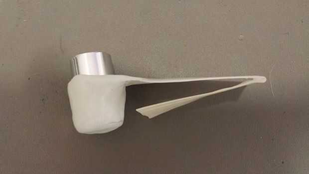 1. utilizando alrededor de 1-2 oz de instamorph, empezar formando un rectángulo largo con más grueso en un extremo. Una manera fácil de hacer esto es recortar el exceso de los lados y añadiendo a la parte superior del extremo más grueso.